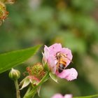 Descrizione: 26 maggio 2012 Il lampone coltivato è in piena fioritura. Questa pianta attira molto le api e il rovo ovvero le more e i lamponi selvatici forniscono al miele valtellinese un apporto qualitativo di particolare pregio. Il miele di lampone è infatti molto delicato di gusto floreale.