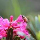 Descrizione: Lele Bergomi, gestore del Rifugio Zoia (Valmalenco) ci ha inviato questa splendida foto di un ape intenta a bottinare sui fiori di Rododendro