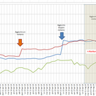 Descrizione: Settimana dal 4 al 11 marzo. Variazione di peso dell'alveare campione monitorato con il Sistema Melixa. da 32,145 kg a 31,348 kg. La successiva crescita è dovuta alle piogge e all'umidità che impregna i legni e si condensa sui favi.