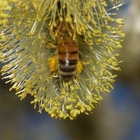 Descrizione: Quest'anno assistiamo ad una fioritura prolungata del nocciolo. Lo sviluppo degli alveari è fortemente potenziato da questa fioritura che fornisce il polline necessario alla crescita delle covate. In questa bella foto di Mauro Diana un ape intenta nella raccolta di polline sugli amenti del nocciolo (fiore maschile)
