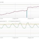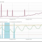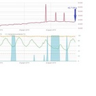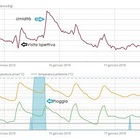 Descrizione: Di particolare interesse questo grafico che mette in rilievo il cambiamento climatico in atto divenuto decisamente autunnale. Le frequenti piogge hanno ridotto in modo drastico alle api la possibilità di uscire dal nido. Poche anche le ore in cui si sono avute temperature dell'aria superiori ai 10 gradi (e siamo in uno dei posi più soleggiati e caldi di Sondrio!!!). Le famiglie sono quindi state in glomere e questa notte le temperature sono scese intorno allo 0°. L'andamento molto fluttuante della temperatura interna dell'alveare dimostra che non c'è più covata. La famiglia ha comunque un sensibile consumo data la consistenza della popolazione.