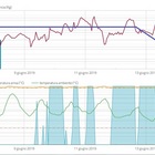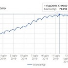 Descrizione: 14 giugno 2019 Il grafico del Sistema Melixa mette in evidenza come l'alveare campione ha cercato dal 6 al 13 un sostanziale equilibrio, pur con ampie fasce in campo negativo e dopo le bombe d'acqua del 11 e 12 giugno ha avuto un vistoso calo di peso per la perdita delle timide fonti nettarifere che era riuscita ad utilizzare