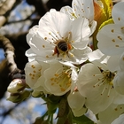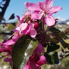 Descrizione: In piena fioritura il melo, il servizio di impollinazione frutteti è in piena attività. Nella foto di Cinzia Leusciatti un ape su un fiore di melo varietà "Red love"