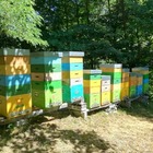 Descrizione: Per molti sarà un'annata produttiva da dimenticare. Faremo una panoramica a breve. Le uniche zone beneficiate sono quelle del Tiglio selvatico. Qui la produzione è consistente e non è ancora finita... ne parleremo. Nella foto un apiario il 9 luglio 2021 nel cuore di boschi di Tiglio