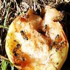Descrizione: settembre - api che raccolgono i succhi zuccherini da un frutto caduto e parzialmente mangiato dagli uccelli. Una vista abbastanza frequente ma che ha fatto credere per lungo tempo agli agricoltori che le api fossero responsabili di danneggiamenti all'uva e ad altra frutta matura.