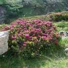 Descrizione: Le giornate calde hanno sviluppato più rapidamente la fioritura del rododendro. Così in pochi giorni porzioni sempre più ampie e quote sempre maggiori sembrano svegliarsi alla primavera alpina che ha, proprio nel rododendro il suo vessillo