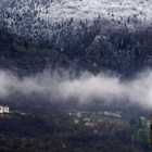 Descrizione: 11 aprile - nevicate alle quote basse. In questo periodo si deve operare sugli alveari seguendo con attenzione le previsioni meteo, gli abbassamenti di temperatura possono rovinare le fioriture e raffreddare le covate. Nella sezione del sito dedicata ai link si possono trovare quelli dedicati alla meteorologia. Nell'immagine alcune case dell'abitato di Albosaggia e boschi con piante di ciliegio fiorite.