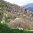 Descrizione: La fioritura di ciliegi è finita nel fondovalle e risale ora le pendici delle montagne. Nella bella immagine di Francesco Baroni i ciliegi in fiore a Sostila, antico borgo montano