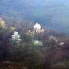 Descrizione: 16 Aprile - da circa due settimane è iniziata la fioritura del ciliegio. Queste chiome bianche si stagliano nel manto ancora invernale dei boschi, è il segnale della primavera e, con il procedere dei giorni, il marrone-grigio del bosco incomincia a tingersi anche di tenui sfumature di verde.