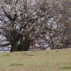 Descrizione: Un maschio di daino si staglia fra i fiori di ciliegio