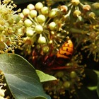 Descrizione: Molti insetti si affollano sull'edera in fiore. Fra questi anche la vespa carabro che con aria innocente sembra godersi un po' di dolce nettare ma non disdegna, in realtà, predare api ed altri insetti essendo, essenzialmente, carnivora.