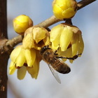 Descrizione: Domenica 9 febbraio 2009. Il Calicanthus è in fioritura e il profumo spesso si sente spandersi dai giardini. Le api visitano con molto interesse questi fiori.