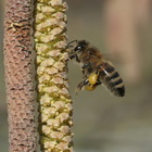 Descrizione: Domenica 8 febbraio 2009, le api volano e sono impegnate nella raccolta di polline. Il nocciolo è in piena fioritura in molti luoghi e le api si approvvigionano di polline. Splendida questa foto di Marco!!
