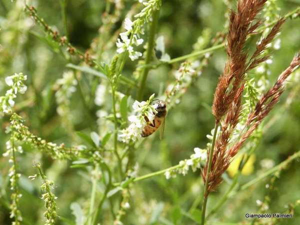 Descrizione: Nei terreni abbandonati e negli incolti troviamo anche questa pianta bottinata dalle api. Appartiene alla famiglia delle Papillionacee, è chiamata volgarmente Meliloto bianco o Vetturina bianca. E' una discreta fonte nettarifera