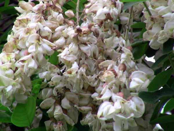 Descrizione: 15 maggio - I grappoli di fiori di Robinia pseudo acacia che sono rimasti esposti per lungo tempo alle piogge si mostrano ormai rovinati. Fortunatamente ci sono ancora diversi posti nella nostra provincia in cui questa pianta ha ritardato la fioritura.