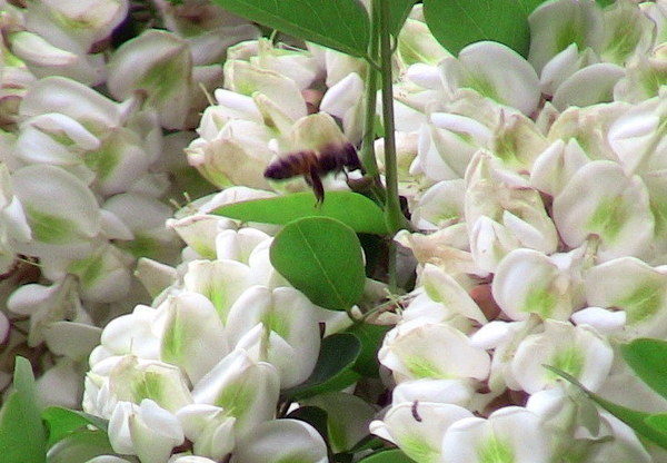 Descrizione: 15 maggio -Le api sono comunque come stregate da questa fioritura che le eccita al lavoro come nessuna altra.Le api frequentano i grappoli di fiori di acacia con un incessante via vai.Autore: Giampaolo Palmieri