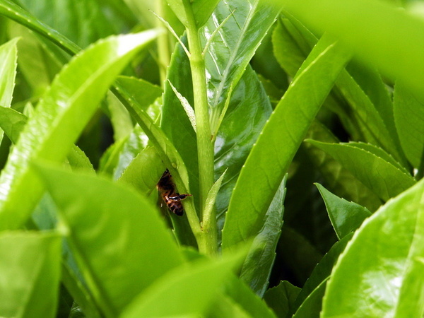 Descrizione: 15 maggio - Fra una pioggia e l'altra il Lauroceraso era ben turgido di umori e, alla base delle foglie le api potevano trovare goccioline di nettare. Sono i nettari extraflorali: a volte l'apprezzamento è tale da avvertire un forte brusio di api al lavoro vicino a queste siepi.