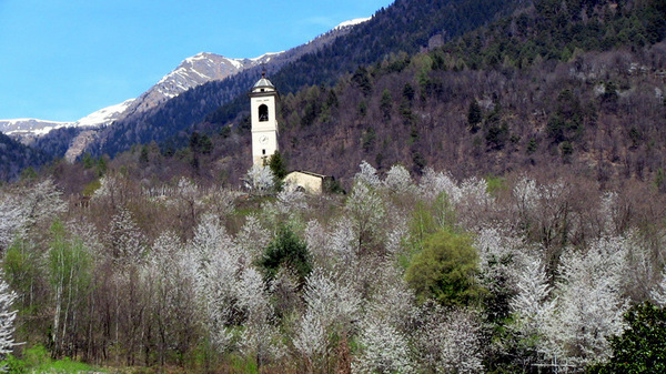 Descrizione: 1 aprile 2011 I ciliegi con la loro fioritura danno il via al risveglio del bosco.(ex Chiesa di San Rocco di Castione - Andevenno)Autore: Giampaolo Palmieri