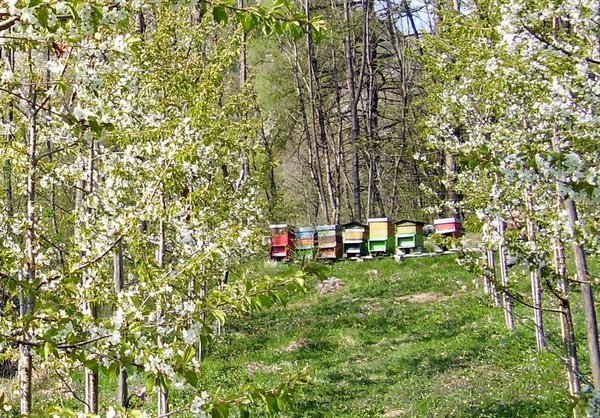 Descrizione: 18 aprile - A quota 1.000 m. i ciliegi sono ancora in piena fioritura. Gli alveari sono ben sviluppati e alcune famiglie sono già al secondo melarioAutore: Giacomo Bonfadini