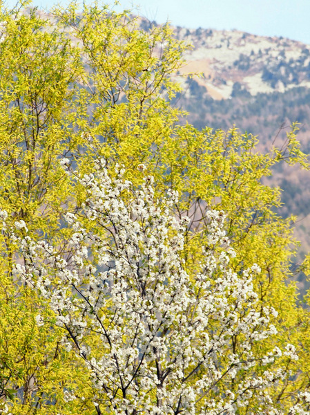 Descrizione: 8 aprile - Piana di Lovero (SO) - il ciliegio è qui ancora in fioritura, dietro si staglia un salice con gli amenti carichi di polline. Queste due piante rappresentano uno dei più potenti stimoli di crescita delle famiglie nel periodo primaverile.