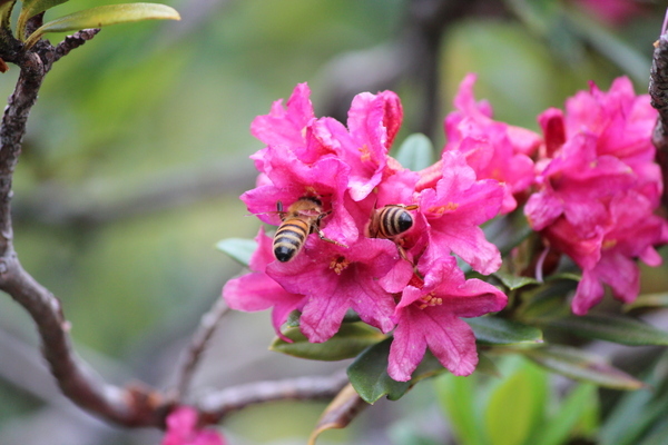 Descrizione: Lele Bergomi, gestore del Rifugio Zoia (Valmalenco) ci ha inviato anche questa splendida foto di api su Rododendro fioritoAutore: Lele Bergomi