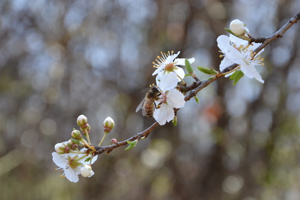Descrizione: Prunus spinosa (Prugnolo), pianta spontanea molto presente nei boschi valtellinesi e particolarmente gradita alle api sia per il polline sia per il nettare.Autore: Cristian Moretti