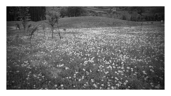 Descrizione: Il Taraxacum officinale ha concluso la sua fioritura. Quest'anno si è presentata prolungata e particolarmente interessante perché è coincisa con ottime giornate di sole. Un raccolto che ha contribuito (con il ciliegio) a risollevare e sviluppare gli alveari usciti affaticati dall'inverno. Secondo gli scienziati le api percepiscono il colore verde come un grigio, un adattamento per meglio evidenziare i colori dei fiori. Il tarassaco sfiorito tende quindi a confondersi nello prato grigio.