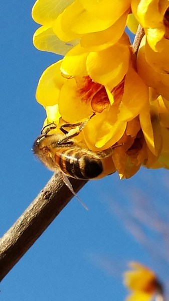 Descrizione: Bella foto di Andrea Ortelli che ritrae un ape mentre visita un fiore di Calicanto. Questa pianta che orna diversi giardini è profumatissima, resistente al freddo e al gelo. Ha una fioritura invernale che può durare diverse settimane con fiori che si manifestano molto prima del fogliame. Il calicanto è originario dei boschi montani del Sichuan, regione a Sud-Ovest della Cina, dove cresce fino a 3.000 metri di quota.