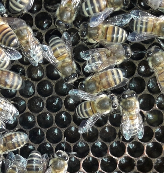 Descrizione: domenica 30 dicembre 2018 L'amico Luigi Pozzi visitando alcuni alveari ha trovato covata fresca!! Le giornate relativamente calde hanno invogliato le regine a riprendere (ma in diversi casi A CONTINUARE) la deposizione. Una situazione che obbligherà a monitorare con ancor maggior attenzione la dinamica della popolazione della Varroa nel 2019