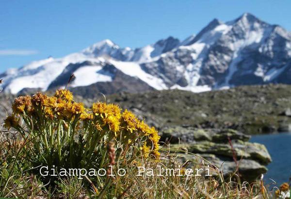 Descrizione: Santa Caterina Valfurva, Lago della Manzina 2.800 m. Fioritura di Senecio incanus, Sullo sfondo si nota la cima del Tresero imbiancata dall’ultima perturbazione. Le fioritura d’alta montagna nivale ormai non rientrano più nel pascolo delle api perché la stagione “calda” è pressoché giunta al termine.