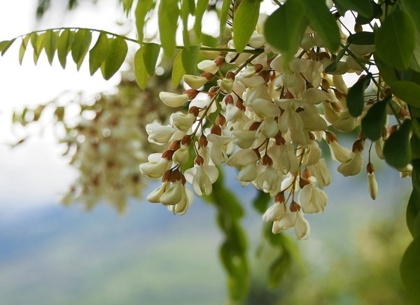 Descrizione: La fioritura della Robinia, nella zona di Sondrio si può dire che è iniziata intorno al 1 maggio. Qualche pianta, sita in luoghi ben esposti o particolari era già entrata in questa fase da alcuni giorni. Oggi 5 maggio le fioritura di Robinia psudo acacia nelle zone intorno a Sondrio coinvolgono il 80 percento delle piante ma solo il 40-50 % dei grappoli fiorali sono completamente aperti.