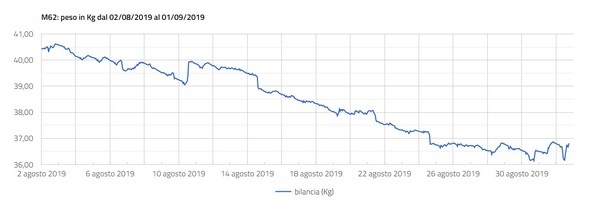 Descrizione: Agosto, come sempre avviene nelle zone della Valtellina sovraffollate di apiari risulta un mese difficile: le fonti nettarifere e pollinifere risultano insufficienti per famiglie ancora molto forti, popolose e con covate più che discrete. Gli alveari sono costretti ad intaccare le scorte tanto che nel mese di agosto, nell'alveare campione posto presso l'apiario didattico a Sondrio, il calo di peso è stato superiore ai 4 Kg