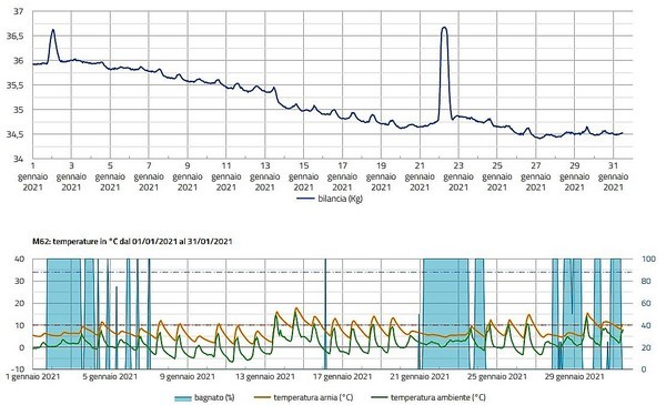 Variazioni di peso dell'alveare campione - Gennaio 2021