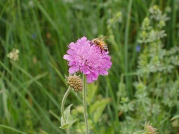 Descrizione: il 10 giugno c'è stata una brinata notturna in montagna che è giunta fino a lambire quota 1.000 m. Una situazione che sta creando difficoltà alle famiglie che sono già state portate in montagna ed alle postazioni fisse più alte. Nell'immagine la Knautia arvensis o Vedovella selvatica, della famiglia delle Dipsacacee
