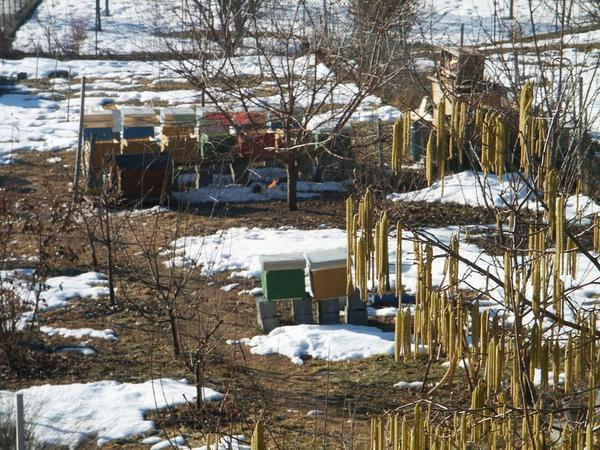 Descrizione: 11 febbraio, gią da un po' di giorni, nei luoghi pił caldi e meglio esposti ai raggi del sole troviamo il nocciolo in fioritura. E' il segno che il lungo inverno sta avviandosi a finire e le api riprendono l'attivitą.