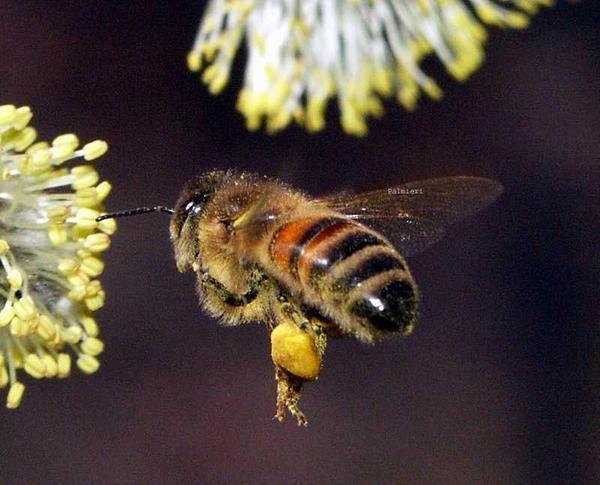 Descrizione: Le piante di salix caprae fiorite richiamano tantissime api che fanno risuona del loro ronzio le chiome tenuemente dorate.Autore: Giampaolo Palmieri