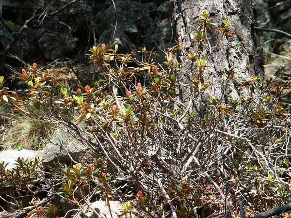 Descrizione: Il rododendro sta iniziando la fioritura nelle sue stazioni più basse (intorno ai 1600 -1700) dove meglio esposto. Il ritorno di freddo verificatosi a fine maggio - inizio giugno non ha, qui, danneggiato i fiori, perché non erano ancora dischiusi ma ridotto l’apparato fogliare. Nelle stazioni più alte e in quelle più riparate, le piante si sono sviluppate con un certo ritardo per la prolungata copertura della neve e sono sfuggite totalmente ai danni del recente abbassamento termico. Analoga situazione ci viene segnalata anche per l’area orobica, mentre per l’Alta Valtellina (in particolare per la Val di Rezzalo) ci sono stati segnalati forti danni a carico di questa fioritura, soprattutto nelle zone meglio esposte.