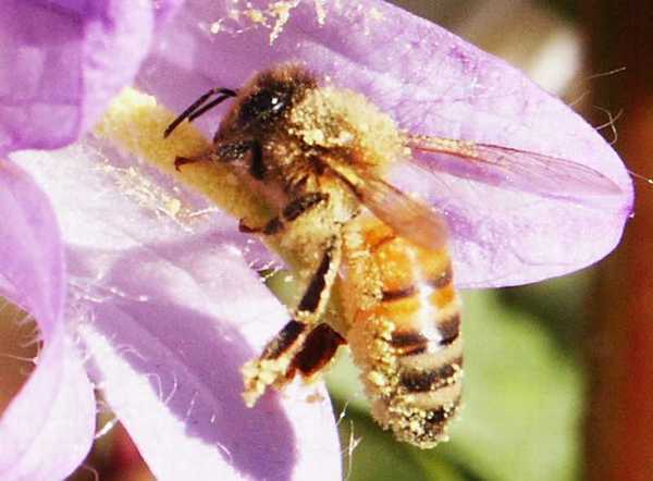 Descrizione: 1° novembre, il vento del nord annuncia l'inverno ma il sole è ancora caldo e nei luoghi riparati ci sono ancora alcuni fiori. Le api non sono sazie di raccogliere e il forte interesse per il polline indica che le covate sono ancora presenti. Curiosa la posizione di questa ape che abbraccia lo stame per meglio raccogliere il polline