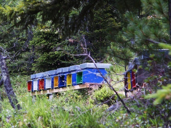 Descrizione: 22 luglio Val Viola. Le postazioni di alta montagna sono ora senza i melari, avviati ai laboratori per l'estrazione del miele di rododendro.Autore: Giampaolo Palmieri