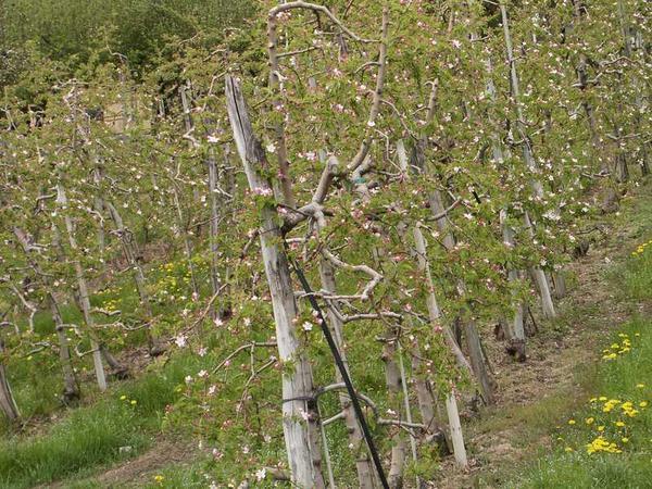 Descrizione: Sta per iniziare la fioritura del melo (Malus domestica). Qui è ritratto un frutteto di Castionetto di Chiuro, ovvero in luogo ben esposto. Autore: Giampaolo Palmieri