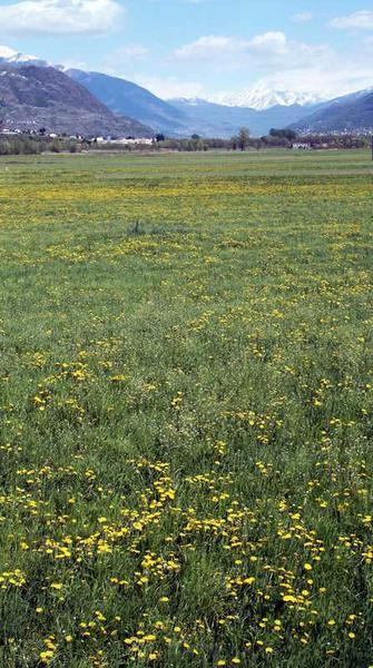 Descrizione: Il tarassaco è in piena fioritura nei prati ed visitato con molto interesse dalle api nonostante siano presenti altre fonti nettarifere concorrenziali;Autore: Giampaolo Palmieri