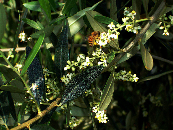 Descrizione: 13 giugno - Una bella foto di Vittorio Mondora di un ape bottinatrice su un fiore di OlivoAutore: Vittorio Mondora