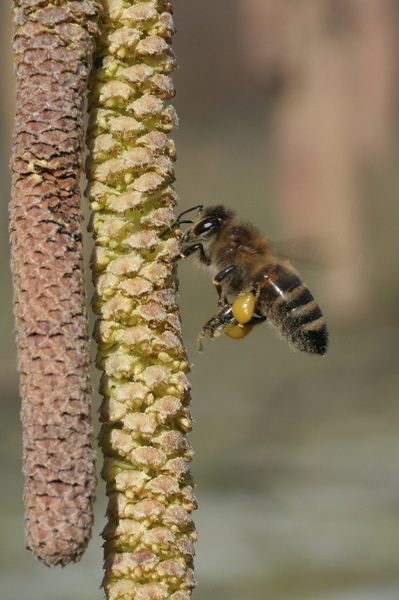 Descrizione: Domenica 8 febbraio 2009, le api volano e sono impegnate nella raccolta di polline. Il nocciolo è in piena fioritura in molti luoghi e le api si approvvigionano di polline. Splendida questa foto di Marco!!